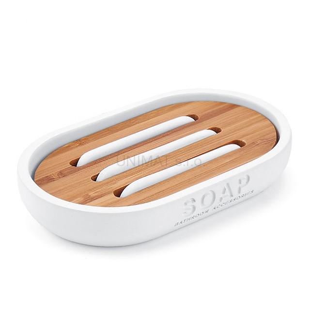 Mydelnička KORA NIMCO. Farba biela. Materiál polyresin, bambusové drevo.