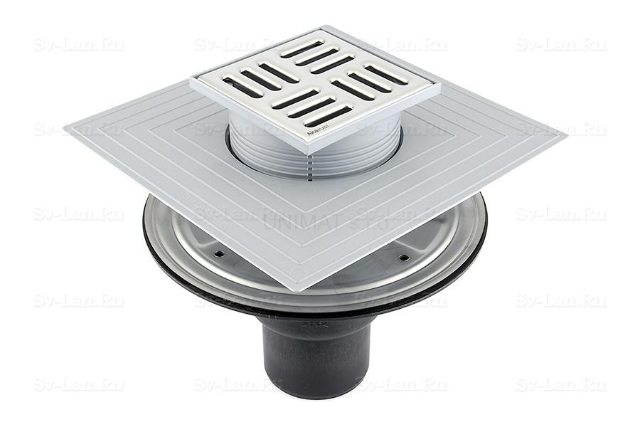 - Podlahová vpusť 105×105/50/75 priama, mriežka nerez APV4344