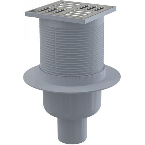 Podlahová vpusť 105 × 105/50 priama, mriežka nerez, kombinovaná uzáver APV32