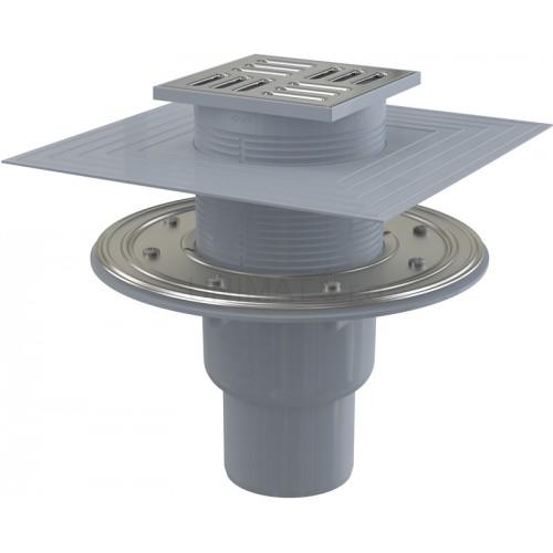 Podlahová vpusť 105 × 105/50 priama, mriežka nerez, prítuba APV2324