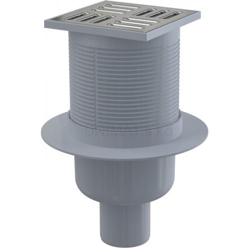 Podlahová vpusť 105 × 105/50 priama, mriežka nerez, vodná uzávera APV2