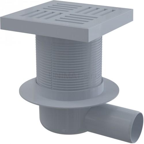 Podlahová vpusť 150 × 150/50 bočná, mriežka šedá, vodná uzávera APV5211