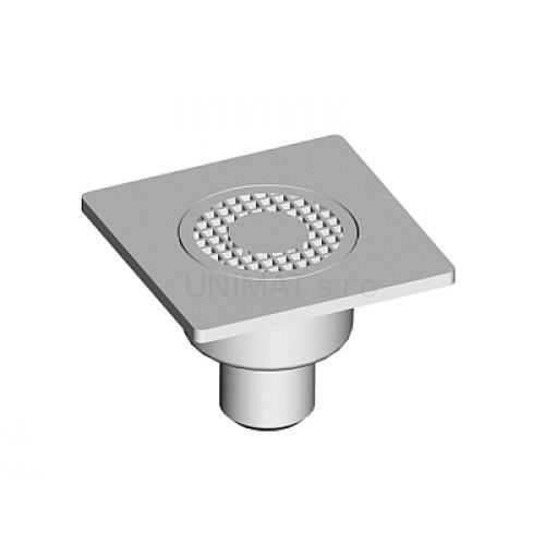 - Podlahová vpusť 150 × 150/50 priama, mriežka šedá, vodná uzávera APV4