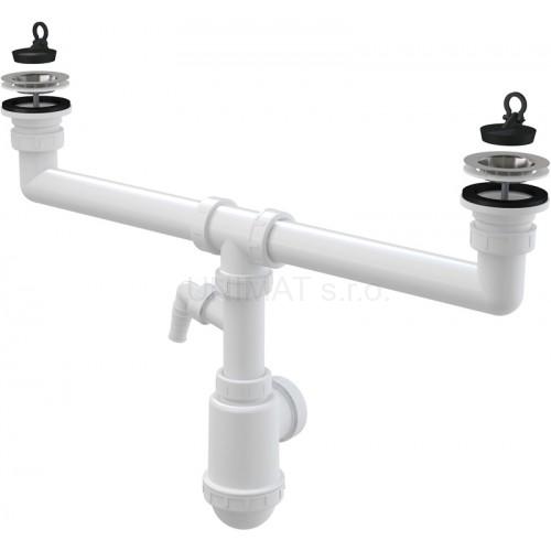 - Sifón pre dvojdrez s nerezovými mriežkami Ø70 a prípojkou A449P Ø50/40