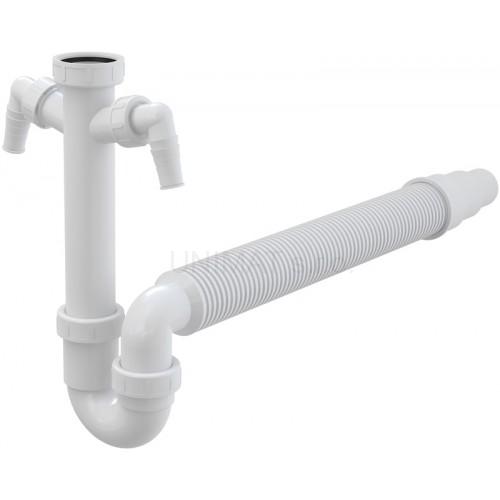 - Sifón trubkový s prevlečnou maticou 6/4", dvoma prípojkami a flexi hadicou A84 Ø