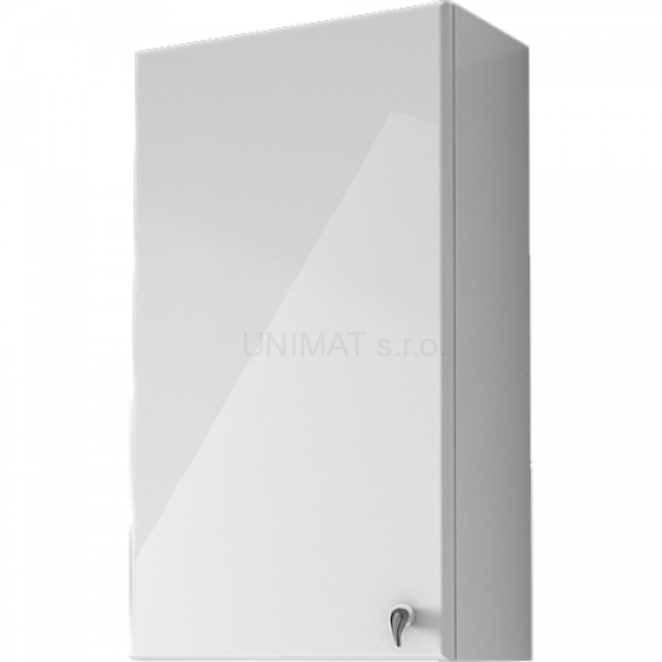 Závesná skrinka s dvierkami bez tlmeného zatvárania s dvoma poličkami.