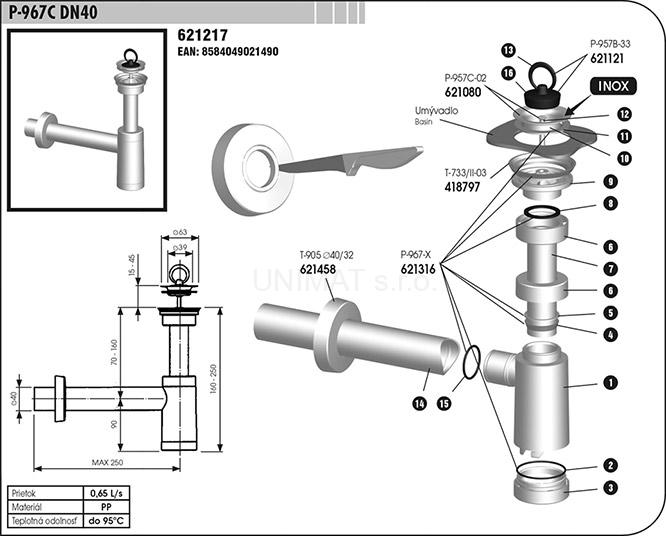 Umývadlový sifón P-967C DN40skladom6,20 €/ ks5,04 € bez DPH