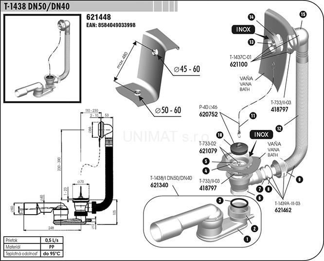 Vaňový sifón T-1438C DN50/DN40skladom13,78 €/ ks11,20 € bez DPH