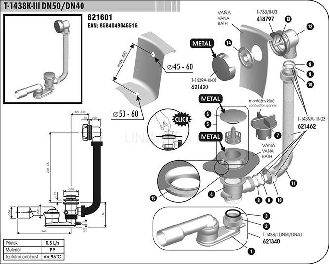 Vaňový sifón T-1438K-III DN50/DN40skladom34,18 €/ ks27,79 € bez DPH