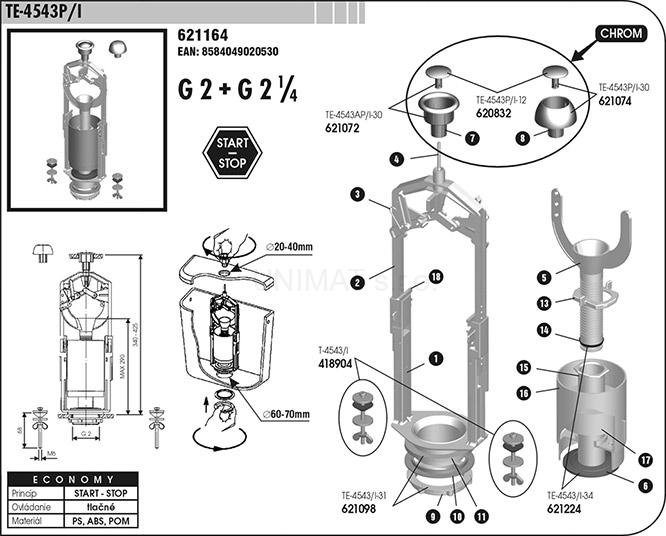 Vypúšťacie zariadenie TE-4543 P/Ido 3 dní15,07 €/ ks12,25 € bez DPH